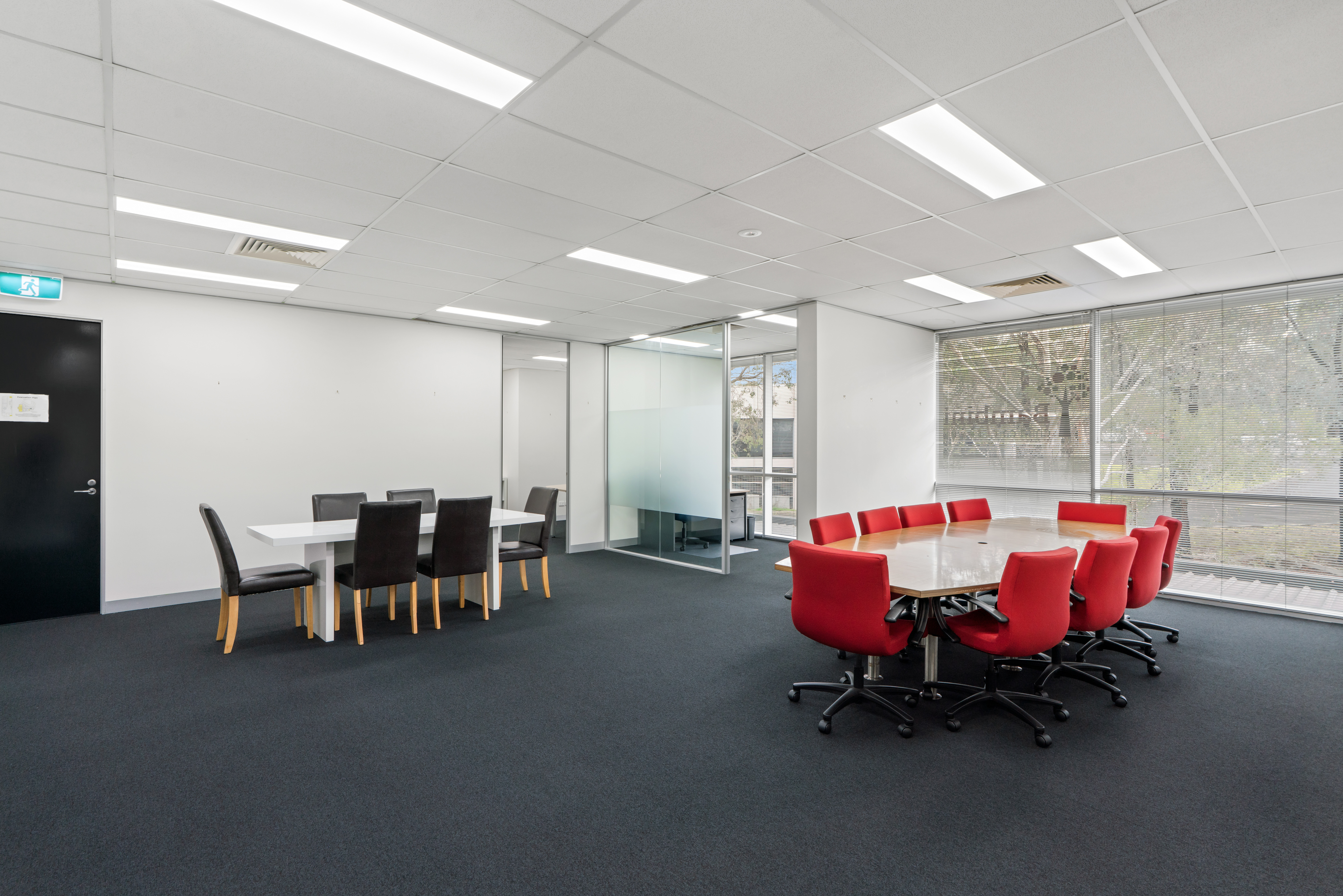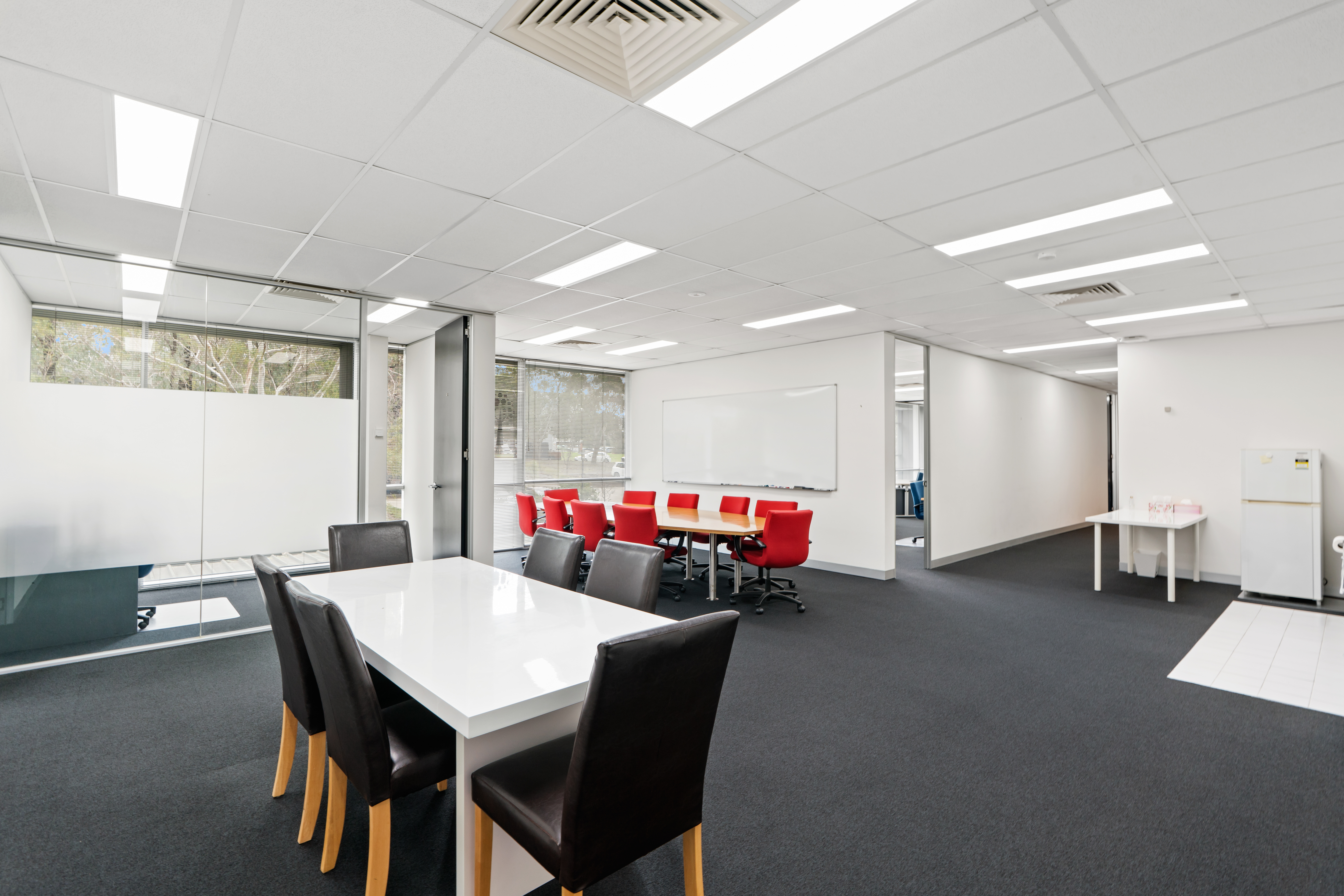 + Light-filled first floor suite of 192 sqm tenancy with modern fit out comprising reception, open plan work area with work stations, board room, executive office, storage and break out spaces