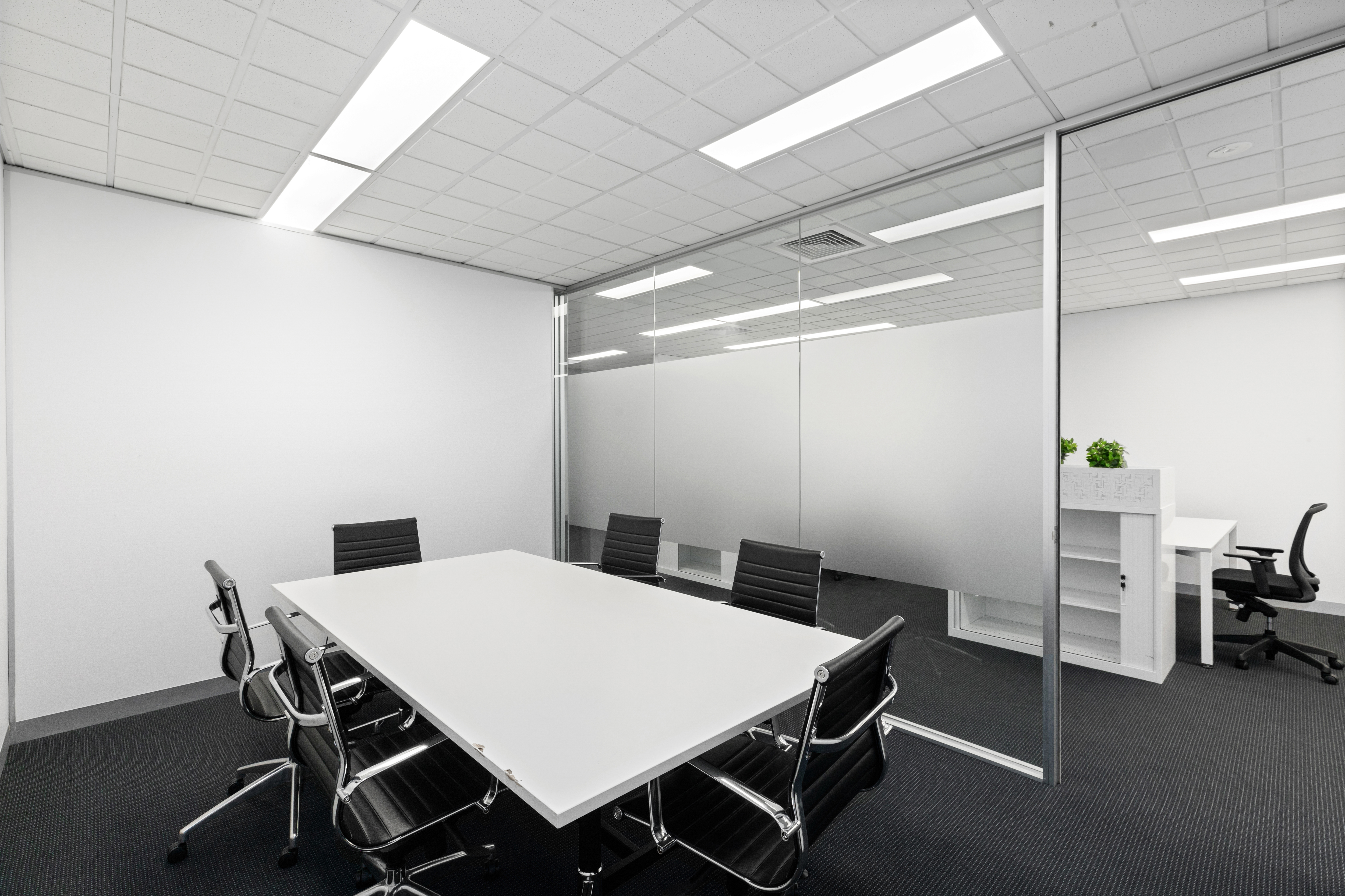 This office features an impressive layout with partitioned offices offering a functional and efficient workspace. The unit is equipped with high quality, ready to use furniture that will remain in place providing a seamless transition for any future tenants. Additionally, it includes self-contained amenities, ensuring convenience and comfort.