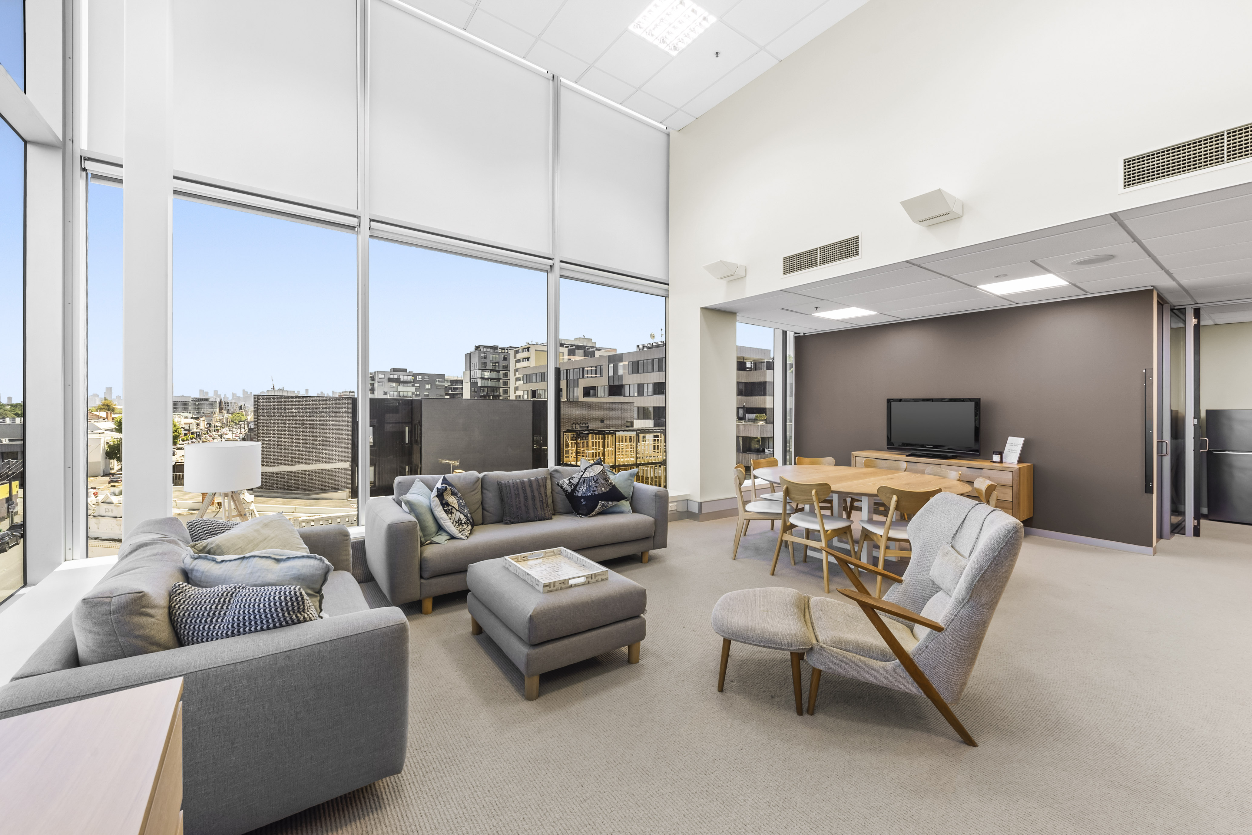This premium top floor office suite boasts expansive floor-to-ceiling windows, offering stunning views of Melbourne’s CBD and an inspiring, vibrant workspace.