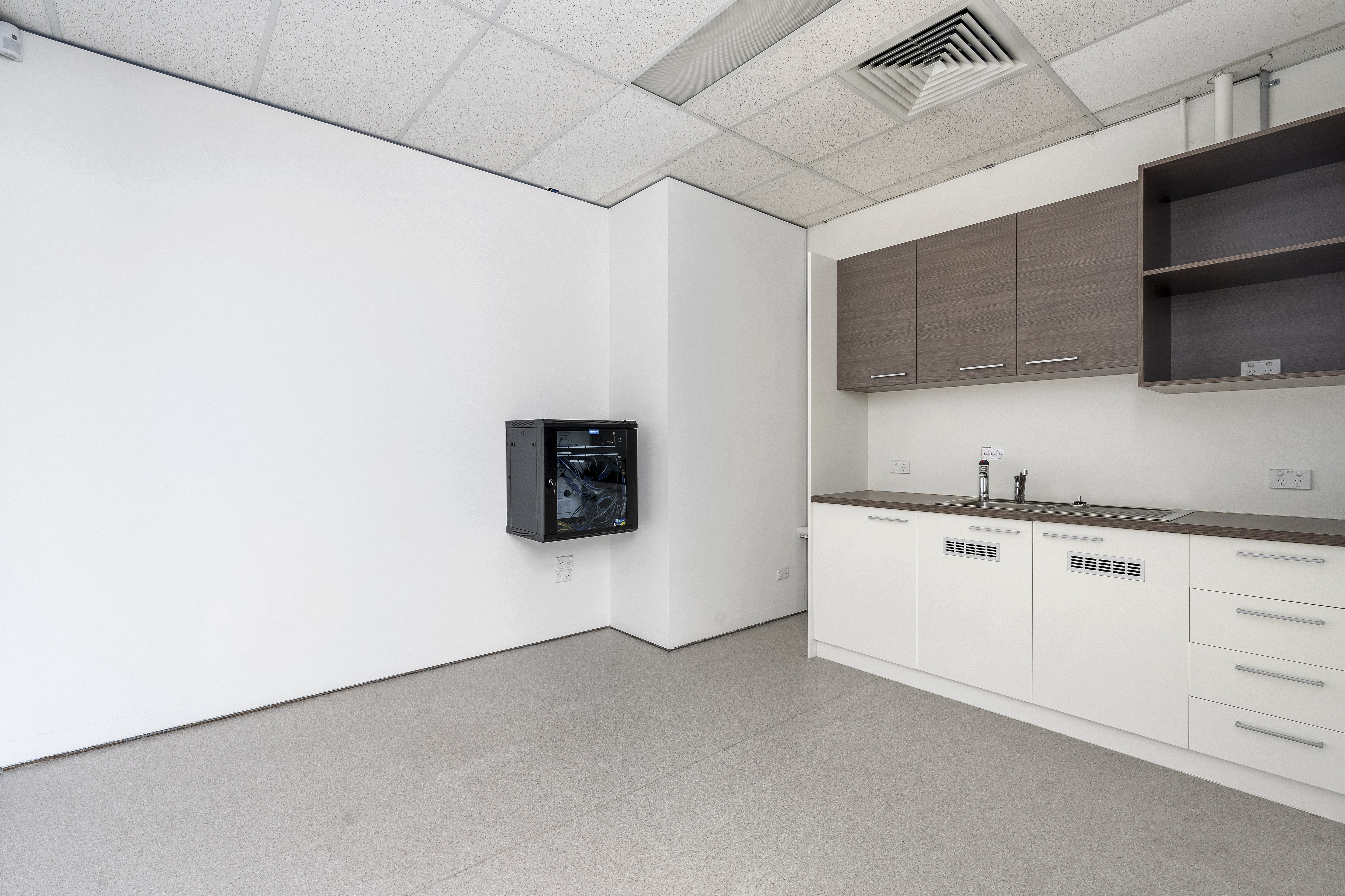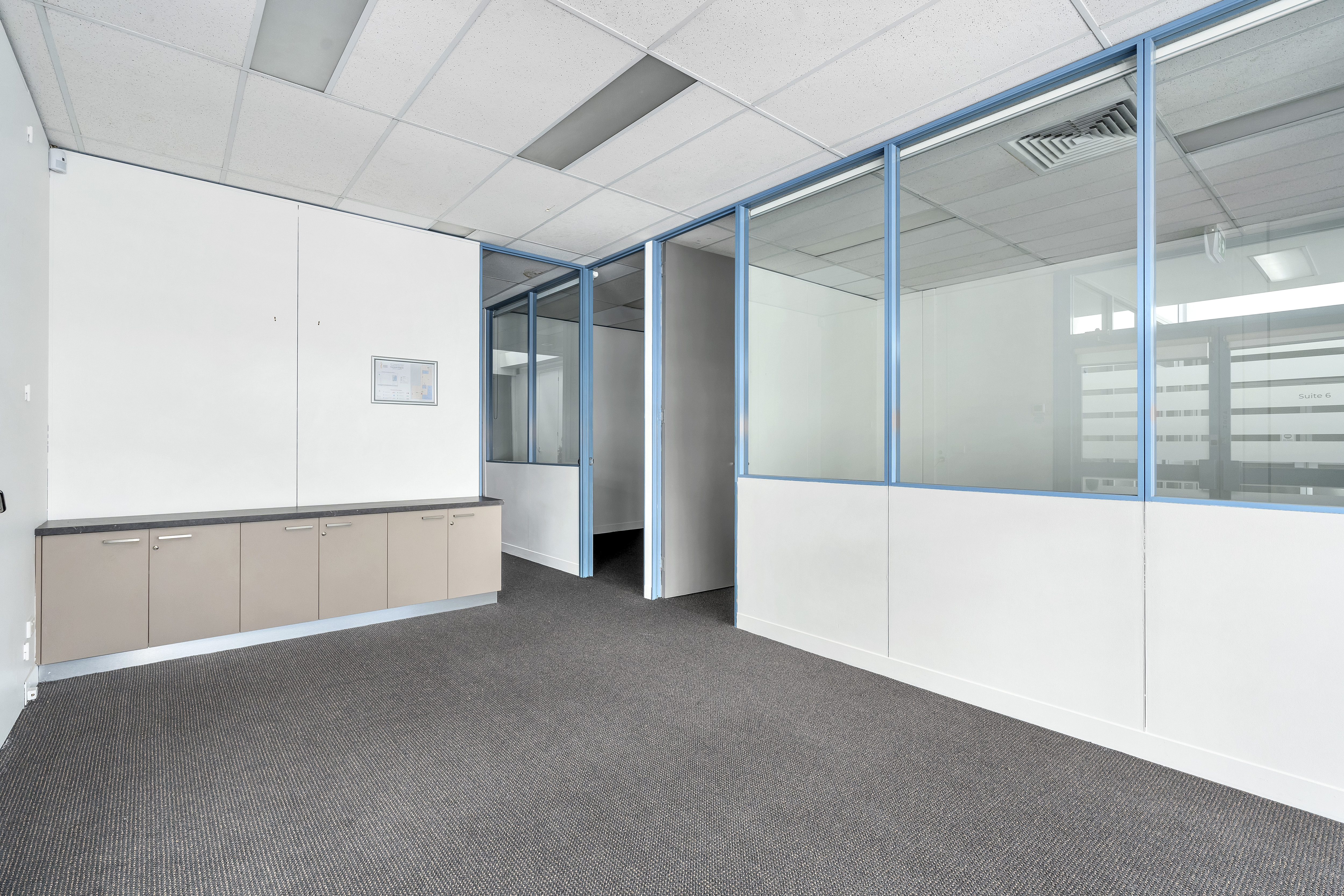 This light-filled Level 1 office suite features a flexible floorplan that can be easily tailored to suit a variety of business needs. With a practical combination of open-plan workspace, two private offices or meeting rooms, and a welcoming reception area, the suite comfortably accommodates a wide range of professional and creative businesses.